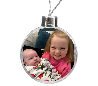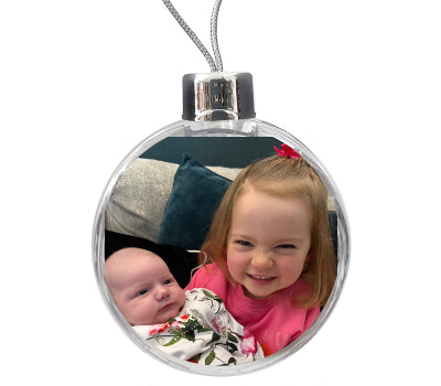 Personalised premium quality double sided round Christmas ornament with an insert size of 80mm x 80mm. Photos are printed onto 280gsm premium glossy photo paper. Each bauble is individually bagged.