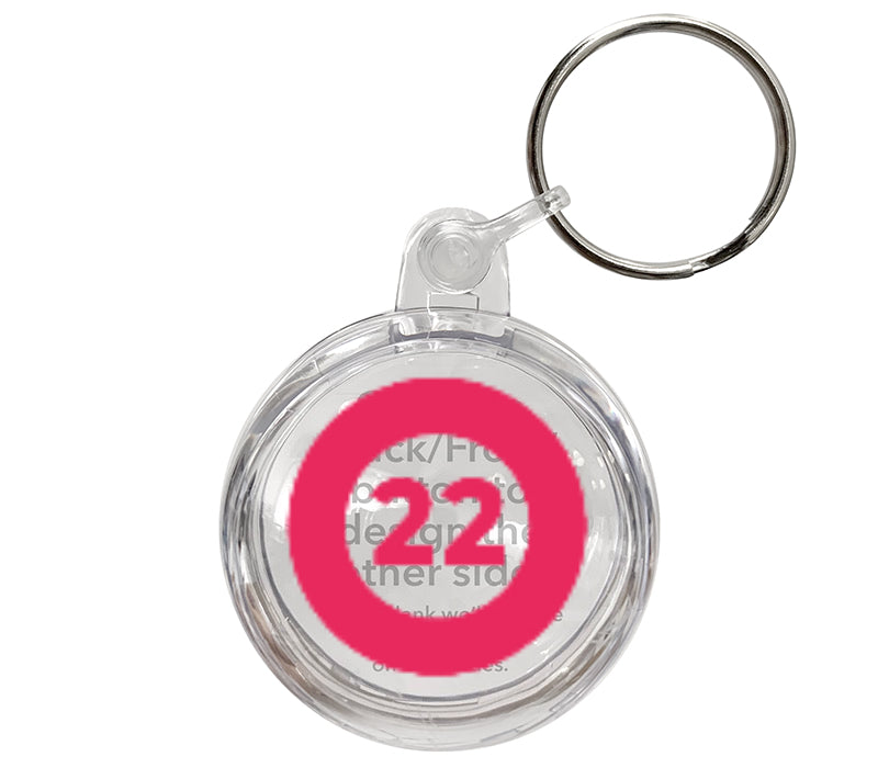 Personalised premium quality double sided clear acrylic photo keyring with a round insert size of 38mm. Images are printed onto 280gsm premium glossy photo paper.