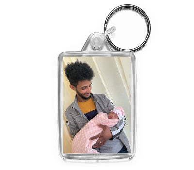 Personalised premium quality double sided clear acrylic photo keyring with an insert size of 50mm x 35mm. Images are printed onto 280gsm premium glossy photo paper.