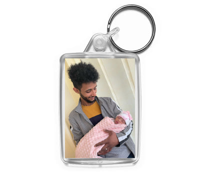Personalised premium quality double sided clear acrylic photo keyring with an insert size of 50mm x 35mm. Images are printed onto 280gsm premium glossy photo paper.
