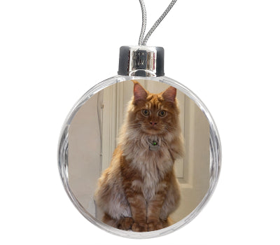 Personalised premium quality double sided round Christmas ornament with an insert size of 80mm x 80mm. Photos are printed onto 280gsm premium glossy photo paper.