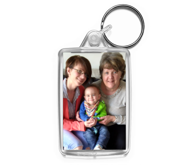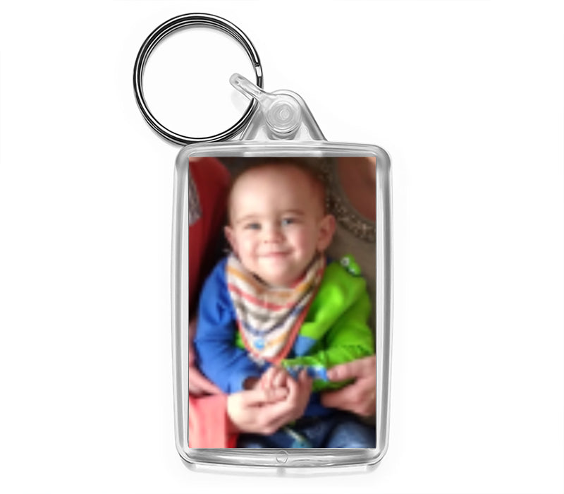Personalised premium quality double sided clear acrylic photo keyrings with an insert size of 70mm x 45mm. Images are printed onto 280gsm premium glossy photo paper.