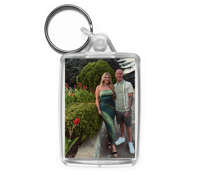 Personalised premium quality double sided clear acrylic photo keyring with an insert size of 50mm x 35mm. Images are printed onto 280gsm premium glossy photo paper.