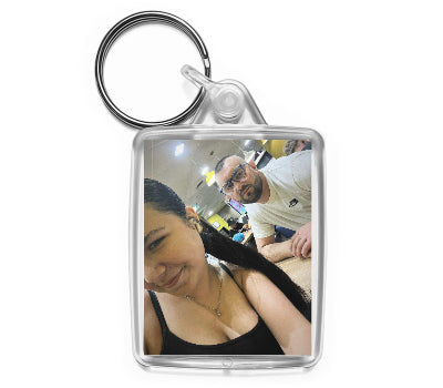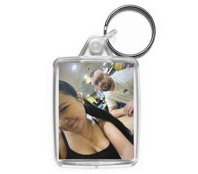 Personalised premium quality double sided clear acrylic photo keyring with an insert size of 45mm x 35mm. Images are printed onto 280gsm premium glossy photo paper.