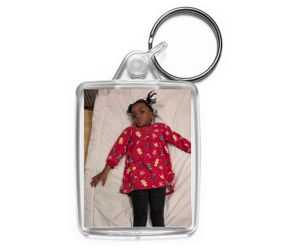Personalised premium quality double sided clear acrylic photo keyring with an insert size of 45mm x 35mm. Images are printed onto 280gsm premium glossy photo paper.