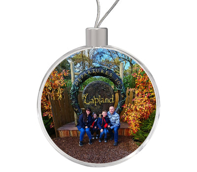 Personalised premium quality double sided round Christmas ornament with an insert size of 70mm x 70mm. Photos are printed onto 280gsm premium glossy photo paper.