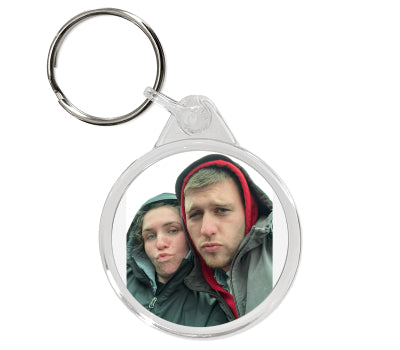 Personalised premium quality round clear acrylic keyring with an insert diameter size of 38mm. Images are printed onto 280gsm premium glossy photo paper.
