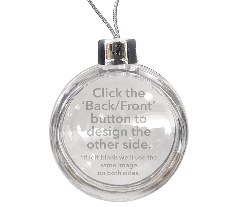 Personalised premium quality double sided round Christmas ornament with an insert size of 80mm x 80mm. Photos are printed onto 280gsm premium glossy photo paper. Each bauble is individually bagged.