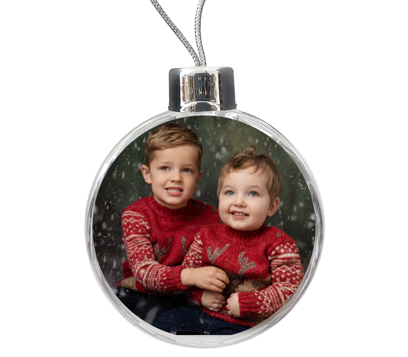 Personalised premium quality double sided round Christmas ornament with an insert size of 80mm x 80mm. Photos are printed onto 280gsm premium glossy photo paper. Each bauble is individually bagged.