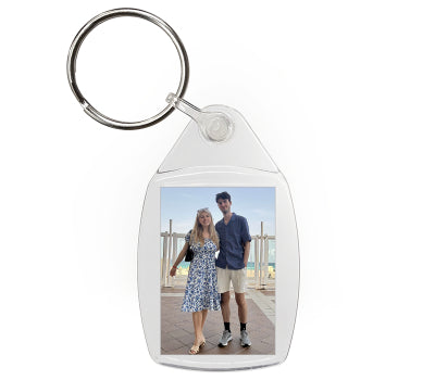 Personalised premium quality double sided clear acrylic photo keyrings with an insert size of 35mm x 24mm. Images are printed onto 280gsm premium glossy photo paper. Each keyring is individually bagged.