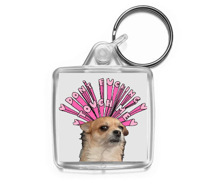 Personalised premium quality double sided clear acrylic photo keyring with a square insert size of 38mm x 38mm. Images are printed onto 280gsm premium glossy photo paper. Each keyring is individually bagged.