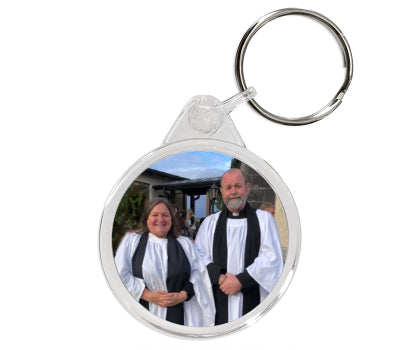 Personalised premium quality round clear acrylic keyring with an insert diameter size of 38mm. Images are printed onto 280gsm premium glossy photo paper.